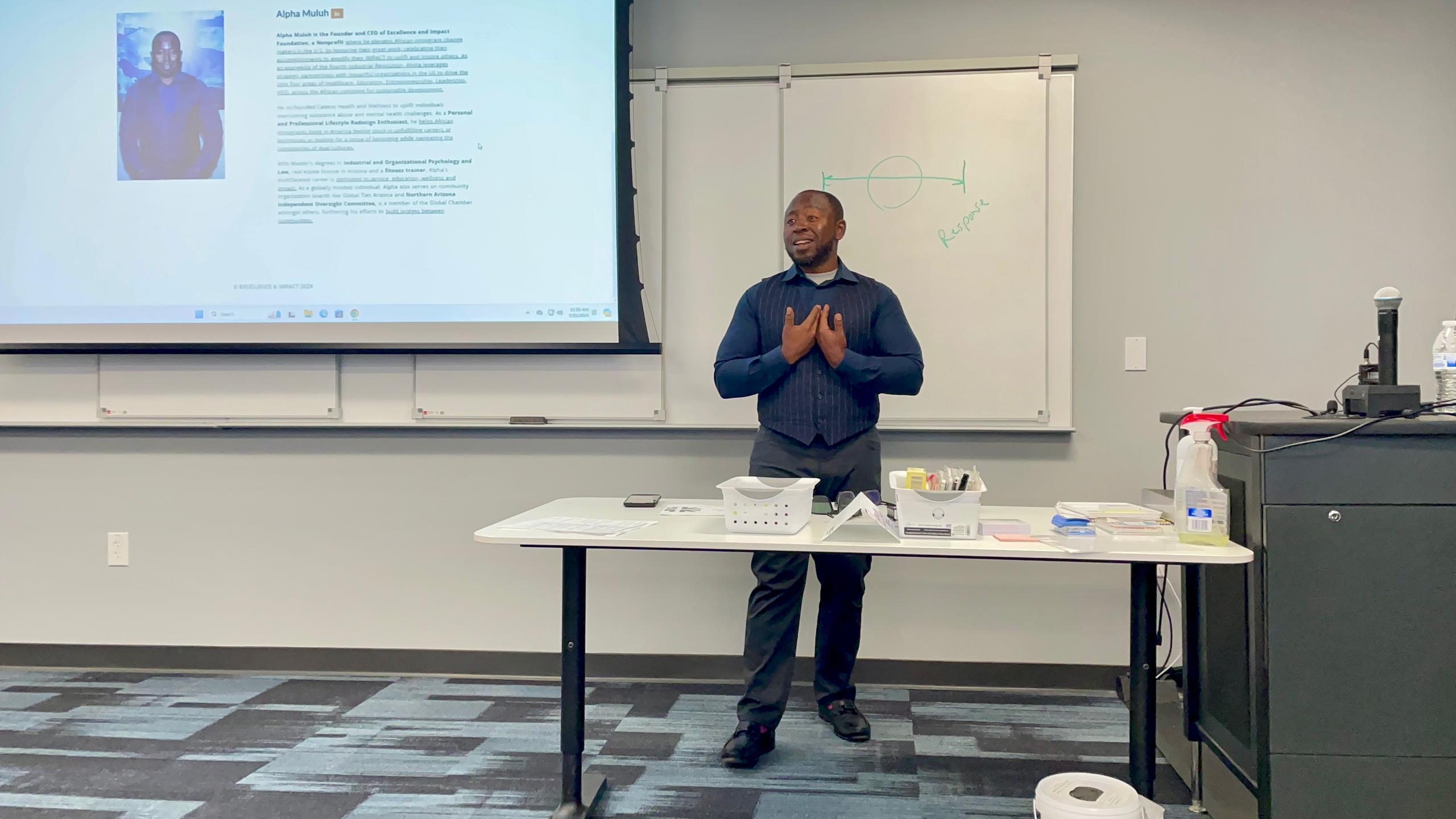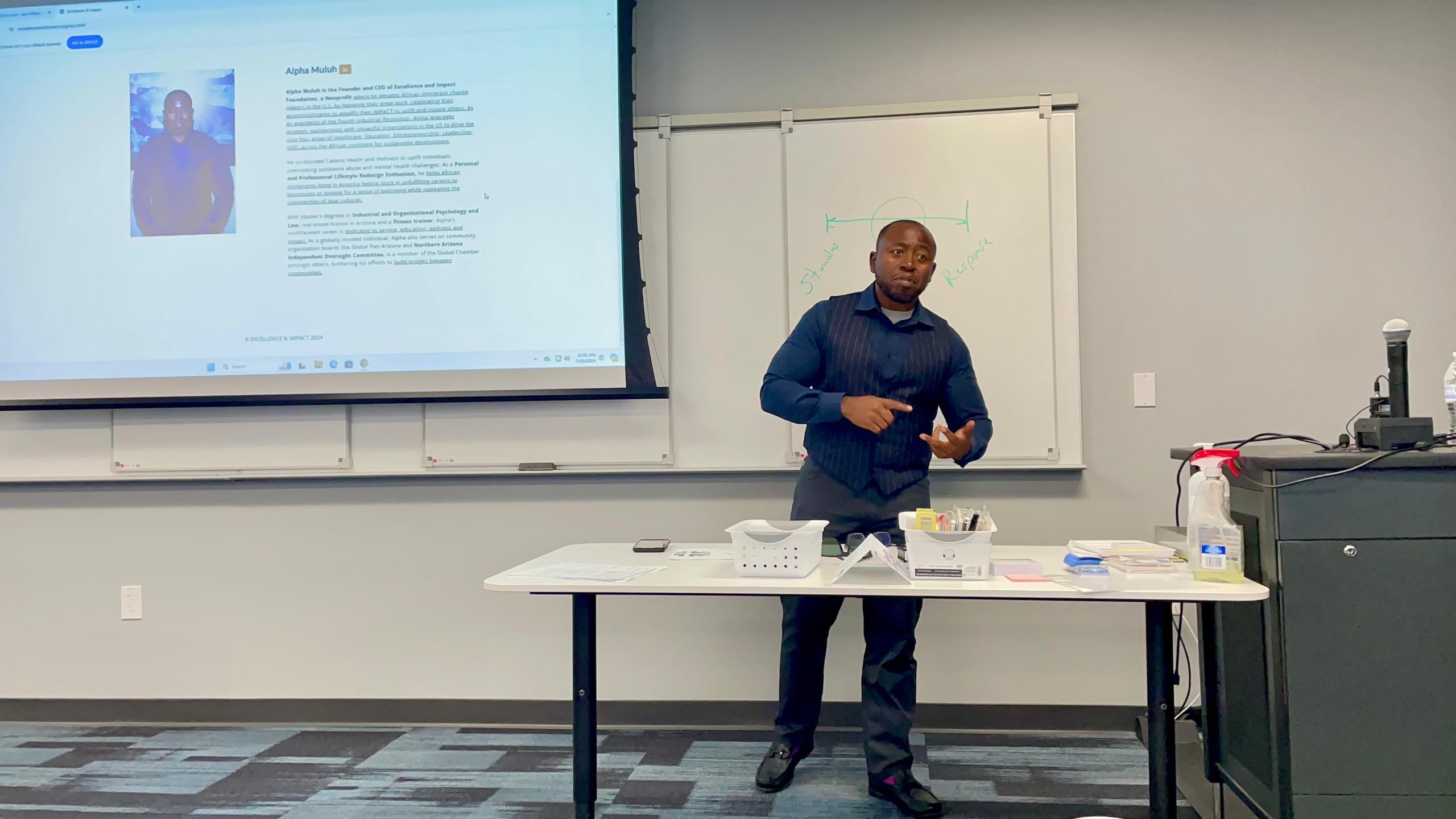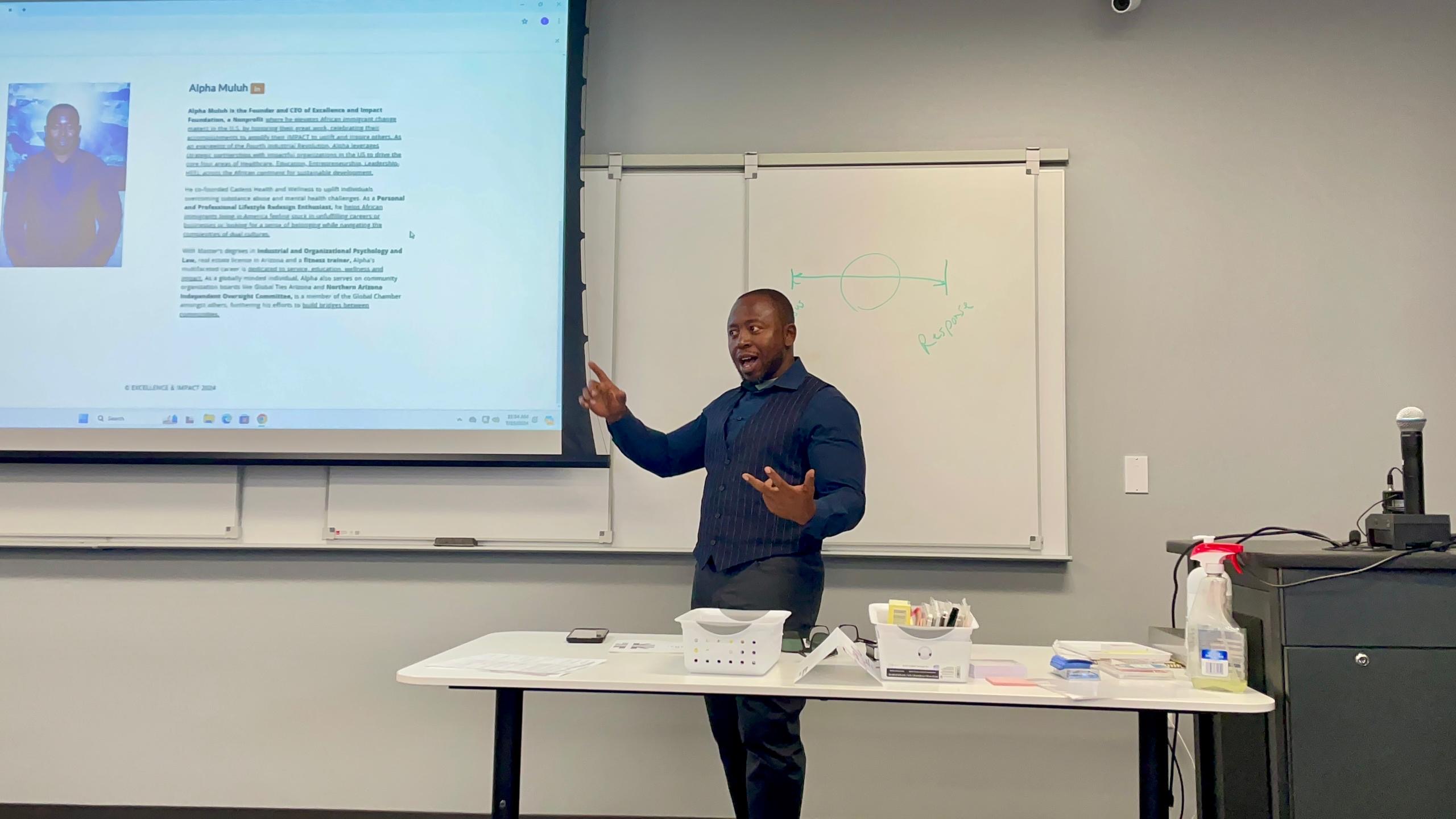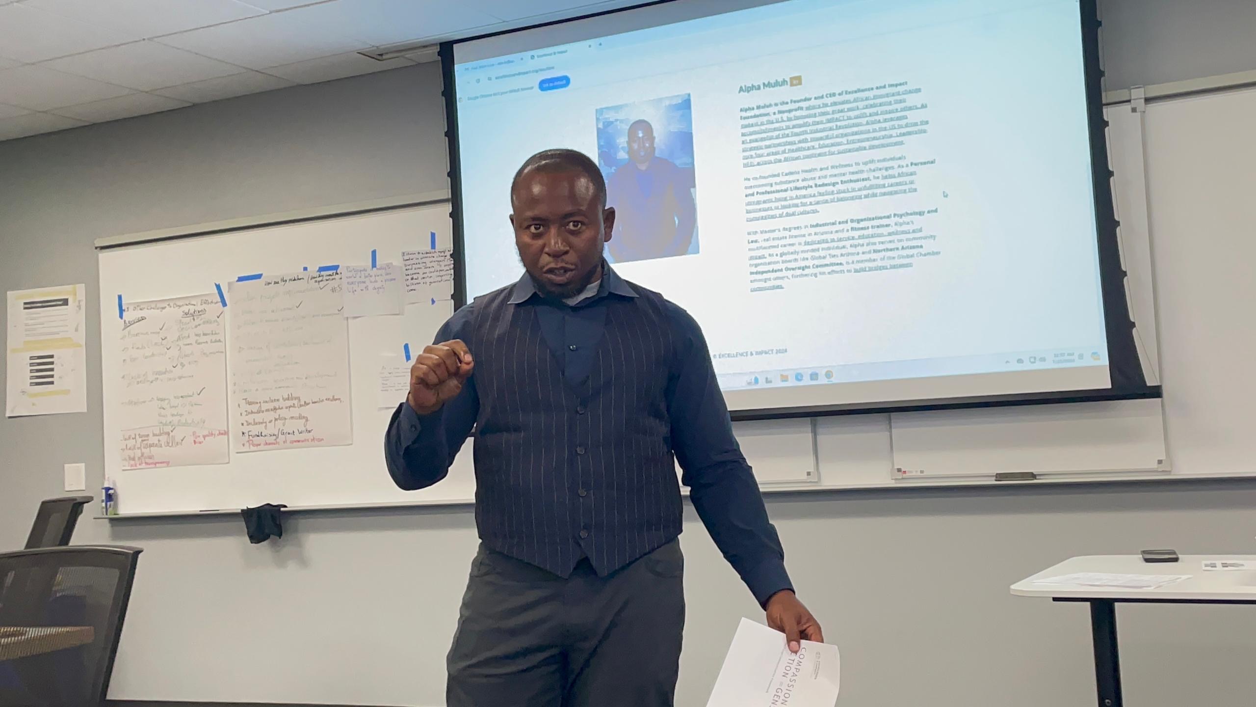 Alpha Muluh is the visionary Founder of the Excellence and Impact Foundation Nonprofit, where he elevates African immigrants living in the U.S. by giving them a voice, increasing their visibility, and celebrating their accomplishments. With a multifaceted career dedicated to service, education, and wellness, Alpha holds Masters degrees in Industrial and Organizational Psychology and Law.